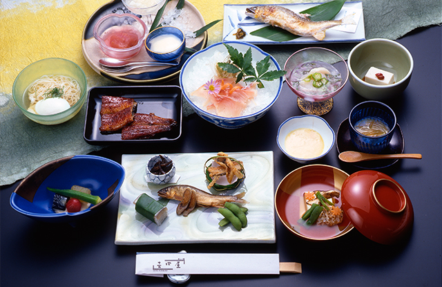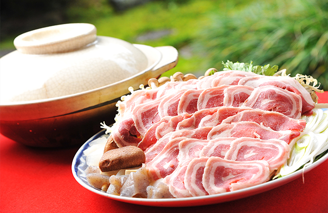 We serve winter special, Shi Shi nabe, or wild boar hot-pot with Gujo miso based soup. We only use 2-3 years old female wild boars which are tender and have no smell. This Shi Shi nabe course also comes with baked eels and the freshest local Ayu (Sweetfish) dishes.